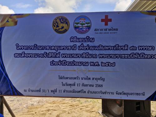 ภายใต้การอำนวยการของ นายอุดมศักดิ์ นวลศิริ นายอำเภอวารินชำราบ สำนักงานพัฒนาชุมชนอำเภอวารินชำราบ นำโดย นางรัชดาวรรณ คำเอี่ยม พัฒนาการอำเภอวารินชำราบ ร่วมกับหัวหน้าส่วนราชการ มอบบ้านกาชาดอุบลราชธานี เพื่อร่วมเฉลิมพระเกรียติ 93 พรรษา สมเด็จพระนางเจ้าสิริกิติ์ พระบรมราชินีนาถ พระบรมราชชนนีพันปีหลวง ประจำปีงบประมาณ พ.ศ.2568 ณ บ้านเลขที่ 31/1 ม.11 ต.เมืองศรีไค อำเภอวารินชำราบ จังหวัดอุบลราชธานี ซึ่งเป็นบ้านของนางไพ สาธุจรัญ